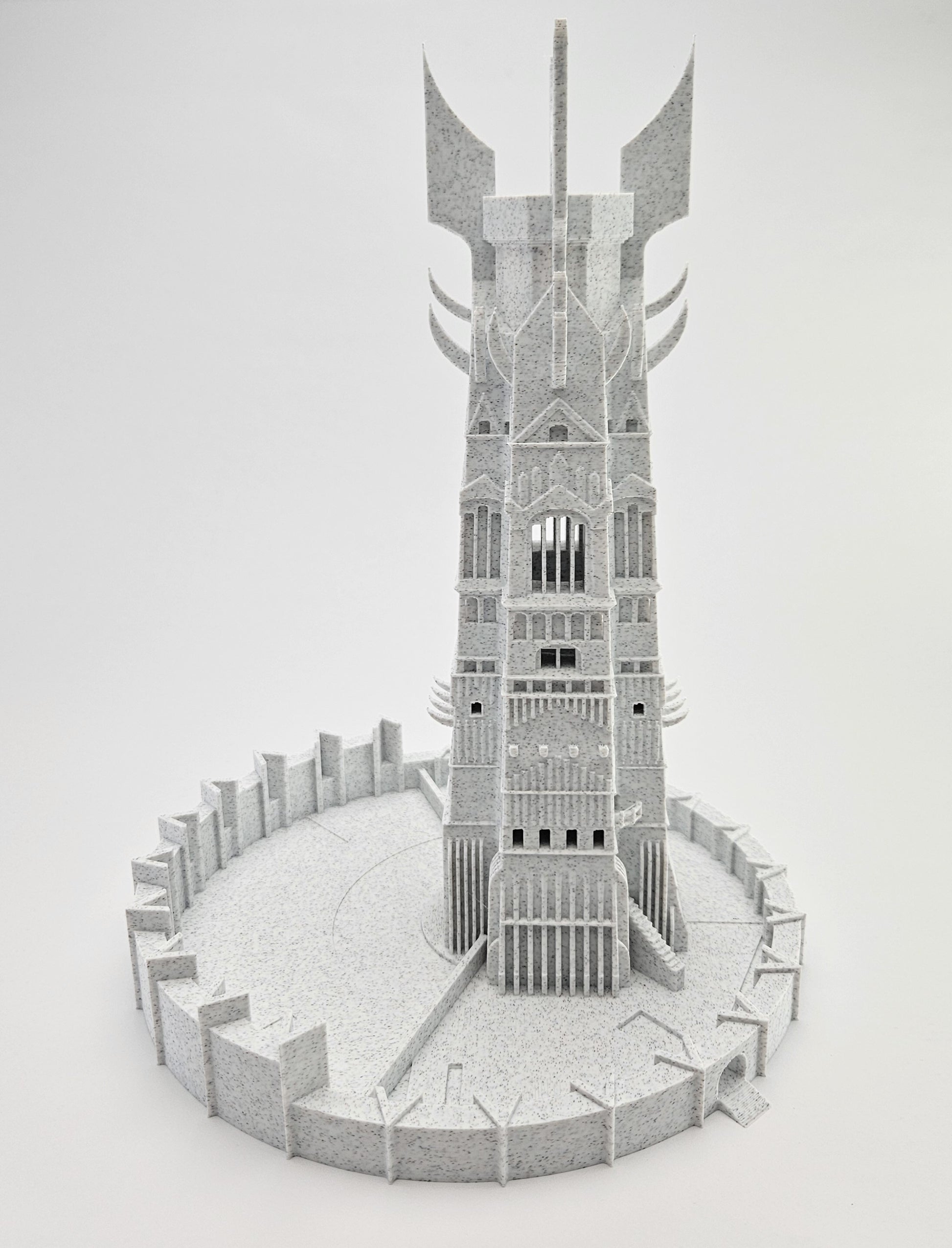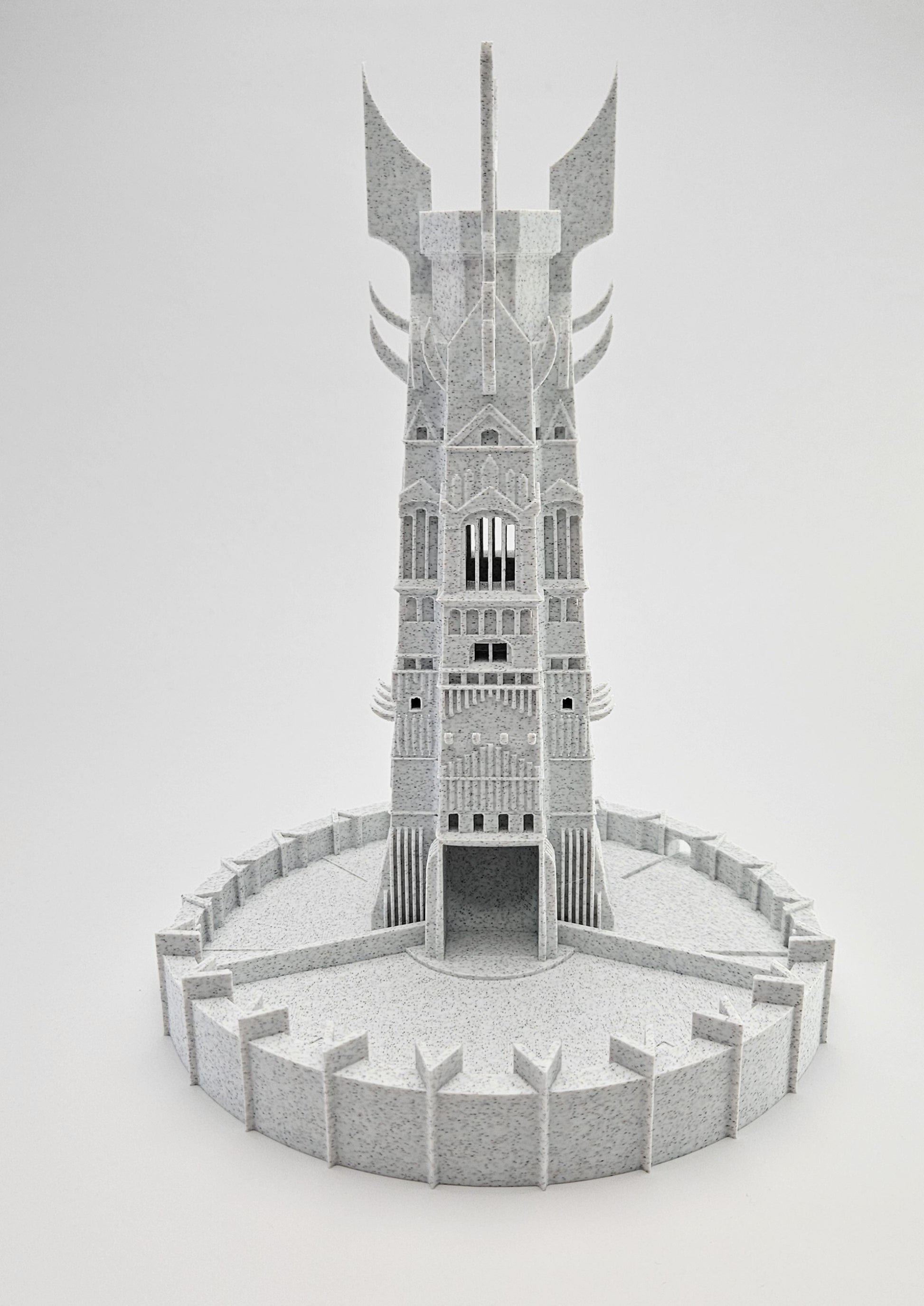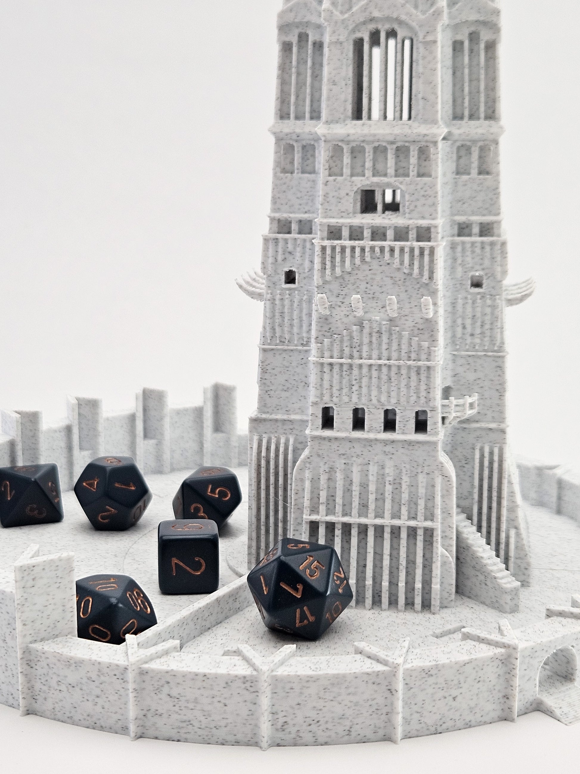A towering structure that channels every roll with authority. Inspired by the dark architecture of Isengard, it merges fantasy design with practical tabletop utility. Smooth internal flow and gothic texture make each roll feel epic. Precision-printed, beautifully finished. Model inspiration / credit: @TheKirklands