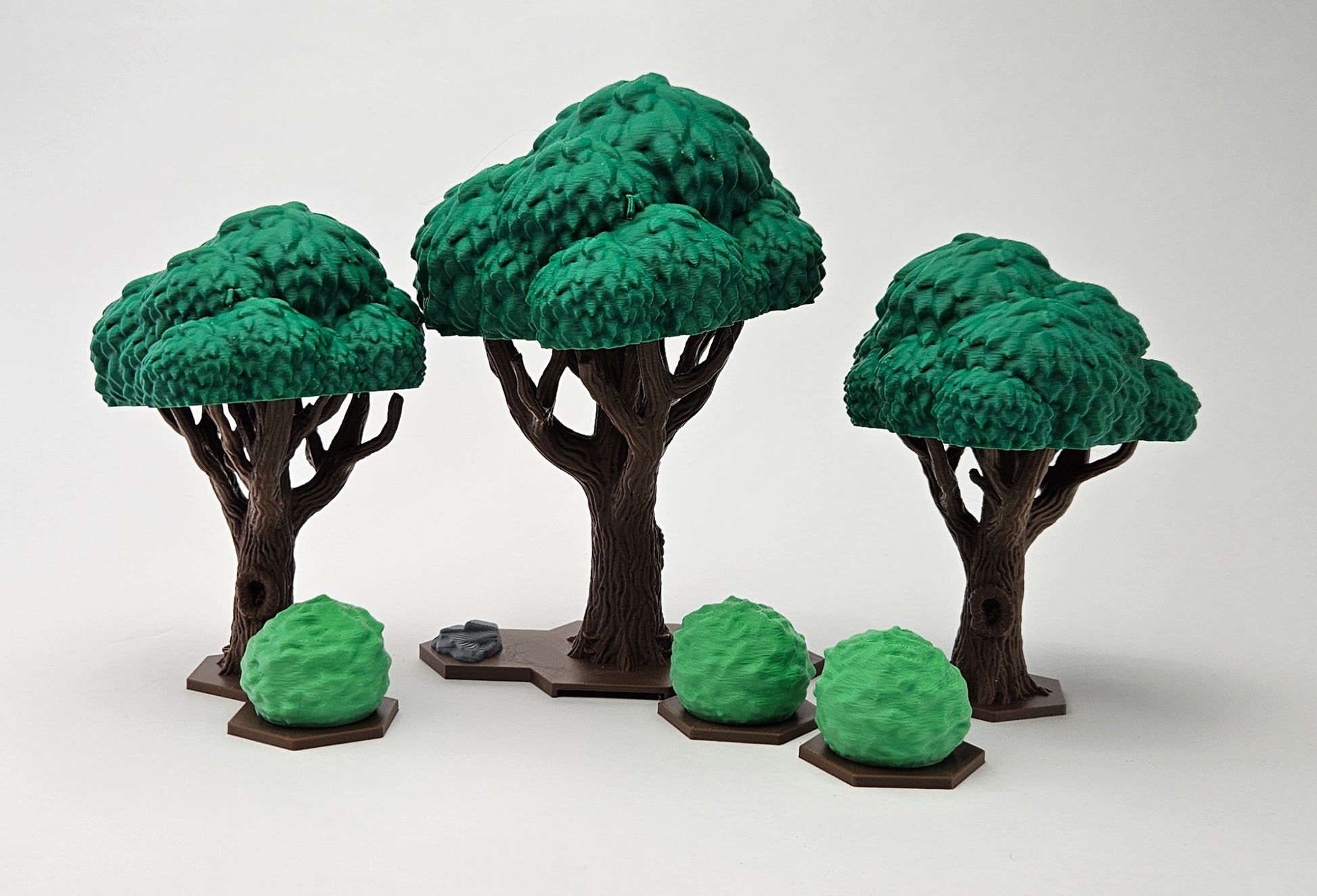 Broad oak canopies and clustered shrubs bring a sense of fullness to your Heroscape landscape. Each piece integrates neatly with hex layouts, creating gentle visual breaks and organic cover. Layered bark and leafy texture lend depth to every board. Balanced design meets handcrafted charm. Model inspiration / credit: @johnhancock55